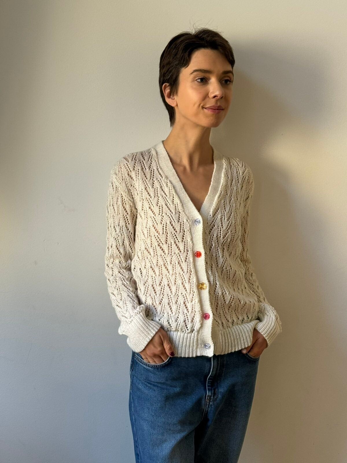 Wrap yourself in luxurious warmth and elegance with Jolie mohair and wool cardigan. Featuring an oversized fit, slightly oversized sleeves, and a delicate ribbon detail at the neck, it blends comfort with timeless sophistication.